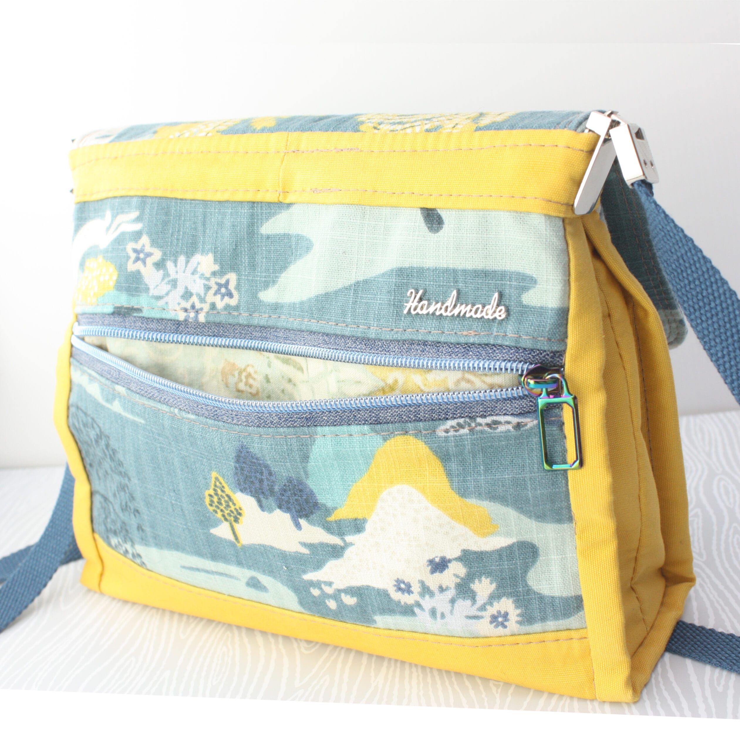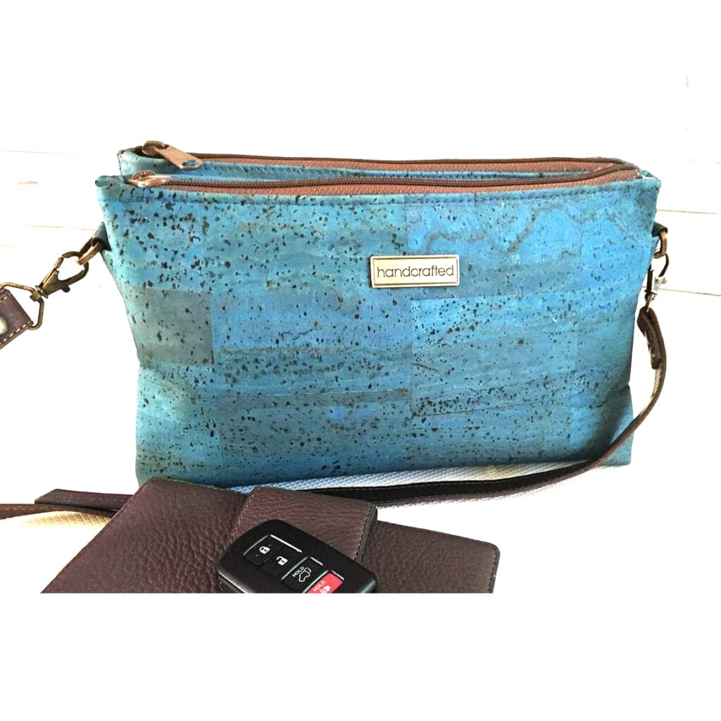You can find premade metal bag labels from your favorite bag hardware supplier. They are available in many metal finishes and designs. The words might stand alone in a beautiful font, or they might be etched into a metal plate. While the front is meant to be admired, the back goes inside your unfinished bag. They are installed using prongs and a washer, so don’t forget to add this step before you sew your bag closed!